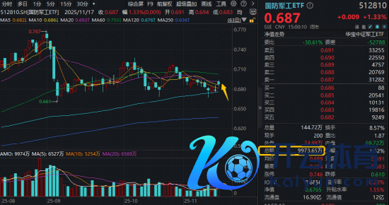 时代面上看,国防军工ETF(512810)受大市影响收出阴线,仍放量连收5日及10日均线,全天成交9974万元,环比激增超113%,反应多头势力权贵更强。