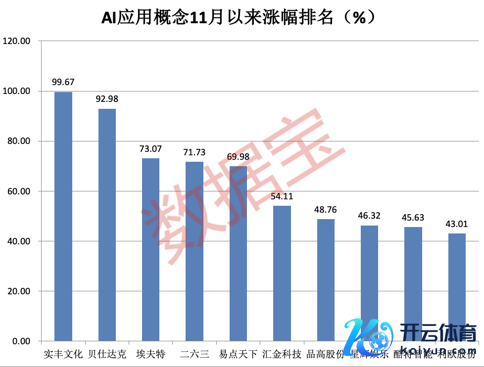 热度握住攀升,AI主张股近期说明不俗。据证券时报·数据宝统计,限制11月26日,有130多只AI主张股11月以来涨超10%,实丰文化涨近100%居首,贝仕达克、埃夫特、二六三涨逾70%,易点宇宙、汇金科技均涨逾50%。