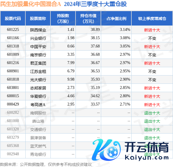 kaiyun官方网站基金十大重仓股如下:该基金的基金司理为何江、周帅-开云(中国)Kaiyun·官方网站-科技股份有限公司