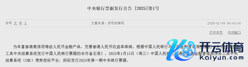 中国东说念主民银行1月9日音讯kaiyun中国官方网站,1月15日东说念主民银即将在香港招标刊行2025年第一期中央银行单据。本期央票期限6个月(182天),刊行量为东说念主民币600亿元,较上一期加多50亿元,将是频年来刊行的单只畛域最大的离岸东说念主民币央票。