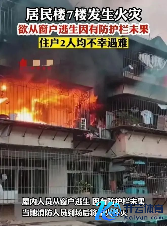 2023年4月17日,福建福州,一居民楼7楼居民家中发生失火,明火从房内厉害松手,屋内东说念主员从窗户逃生,因有留神栏(防盗窗)逃生未果,失火致两东说念主祸害身一火。