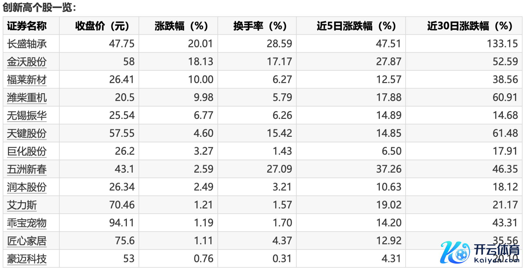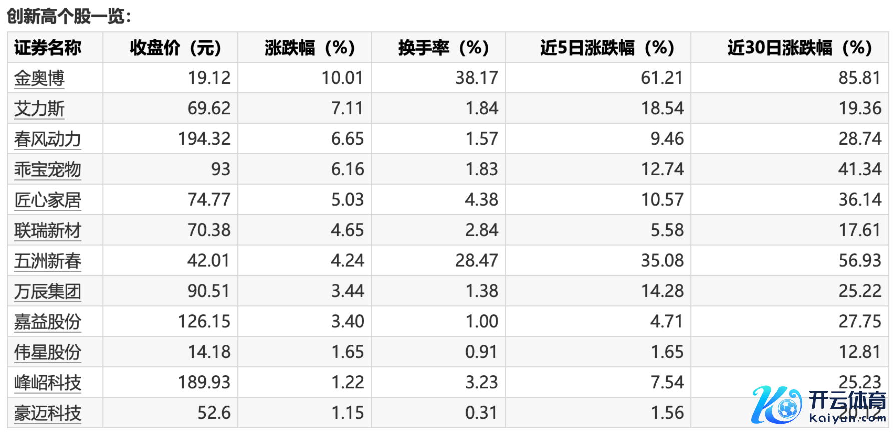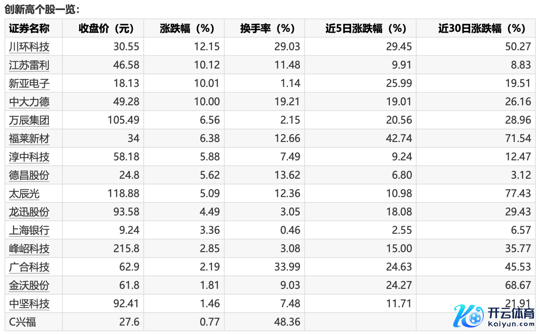 本日12只个股收盘创历史新高kaiyun本日12只个股收盘创历史新高