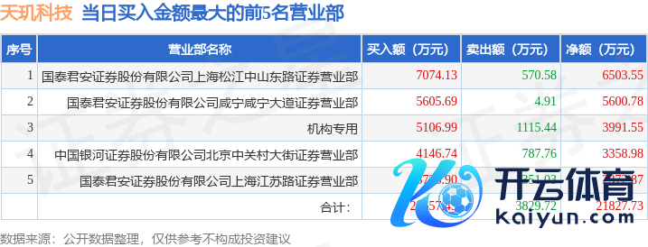 证券之星音信,沪深来回所2025年2月26日公布的来回公开信息深化kaiyun官方网站,天玑科技(300245)因日涨幅达到15%的前5只证券,日换手率达到30%的前5只证券登上龙虎榜。这次是近5个来回日内第3次上榜。