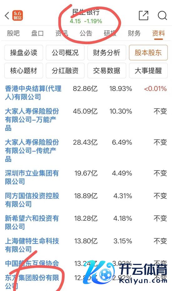 比拟值钱的,即是在金融板块,东方集团抓有民生银行12.8亿股股份,占民生银行总股本的2.92%,以现时股价4.15元计算,这部分股权市值约53.12亿元。