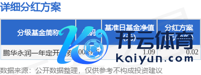 本站音讯,9月24日发布《鹏华基金措置有限公司对于鹏华永润一年依期敞开债券型证券投资基金2025年第9次分成公告》。本次分成为2025年第9次分成。公告浮现,本次分成的收益分派基准日为9月9日kaiyun中国官方网站,戒备分成决策如下:
